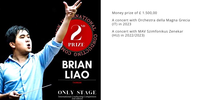 Brian Liao won the 2nd Prize of 2nd International London Only Stage Conducting.